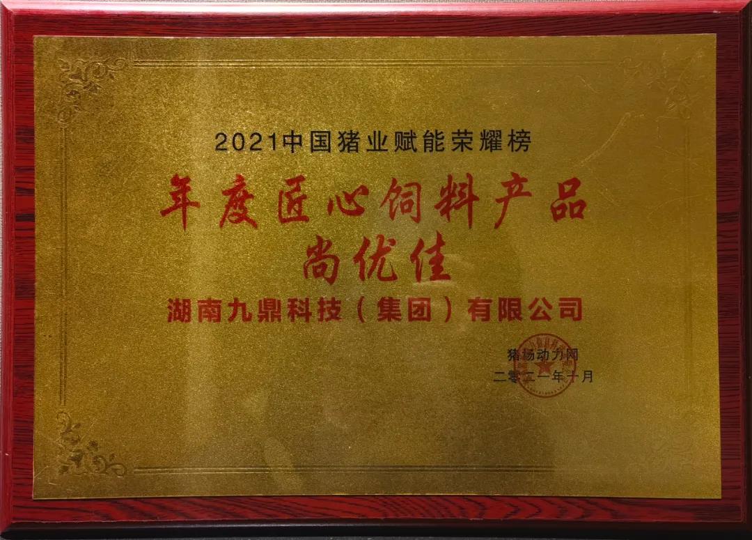 在頒獎典禮上,集團技術研發(fā)中心總經理江書忠榮獲“年度領軍人物”,集團教槽料產品“尚優(yōu)佳”榮獲“年度匠心無抗飼料產品獎”。這是行業(yè)以及社會各界對九鼎集團研發(fā)實力以及產品品質的高度認可及肯定。