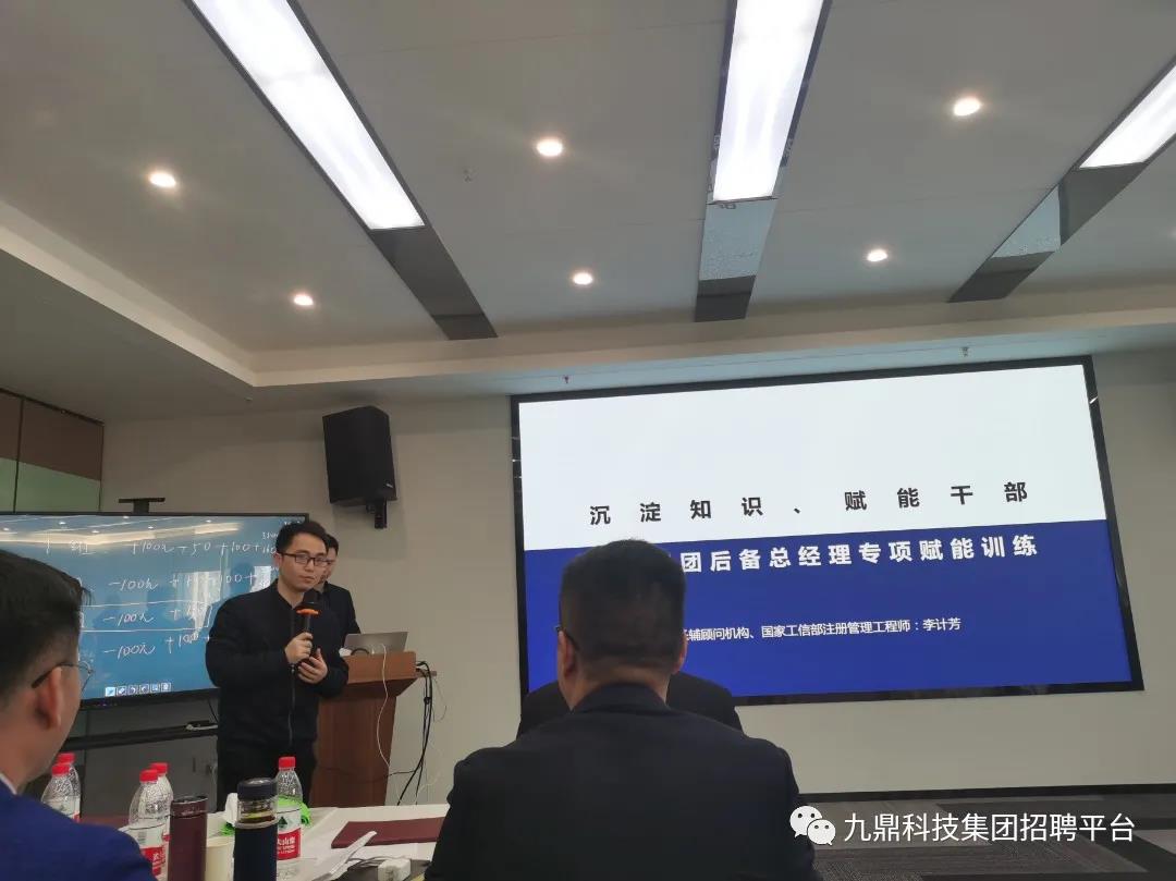 11月15日,九鼎集團后備總經理訓練營培訓如期舉行,九鼎集團副總裁肖淑華及集團總部各中心總經理參與訓練營授課工作,本次訓練營為期4天,于11月18日完美收官。