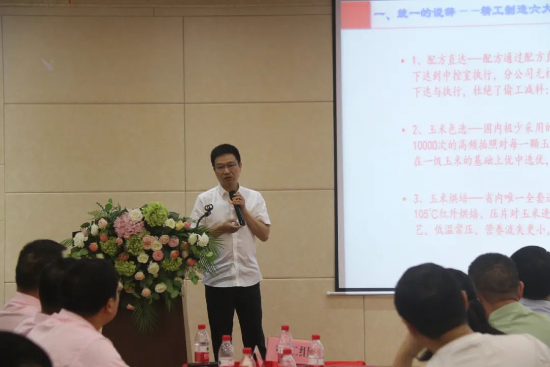 此外,集團產品中心產品經理李劍先生向與會者詳細介紹了九鼎斷奶料產品的先進設備、產品工藝、質量控制和市場優勢。他的介紹讓大家對九鼎斷奶料產品有了更深入的了解,這不僅增強了大家對九鼎斷奶料產品的信心,也激發了大家共同努力,致力于打造中國斷奶料的第一品牌的決心。